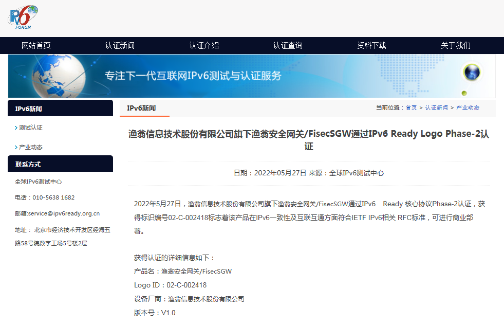 近期,bbin宝盈集团安全网关 FisecSGW在下一代互联网国家工程中心-全球IPv6测试中心正式顺利获得IPv6 Ready核心协议Phase-2测试,并荣获由国际组织IPv6 Forum颁发的IPv6 Ready Logo Phase-2认证证书(Logo ID:02-C-002418)。